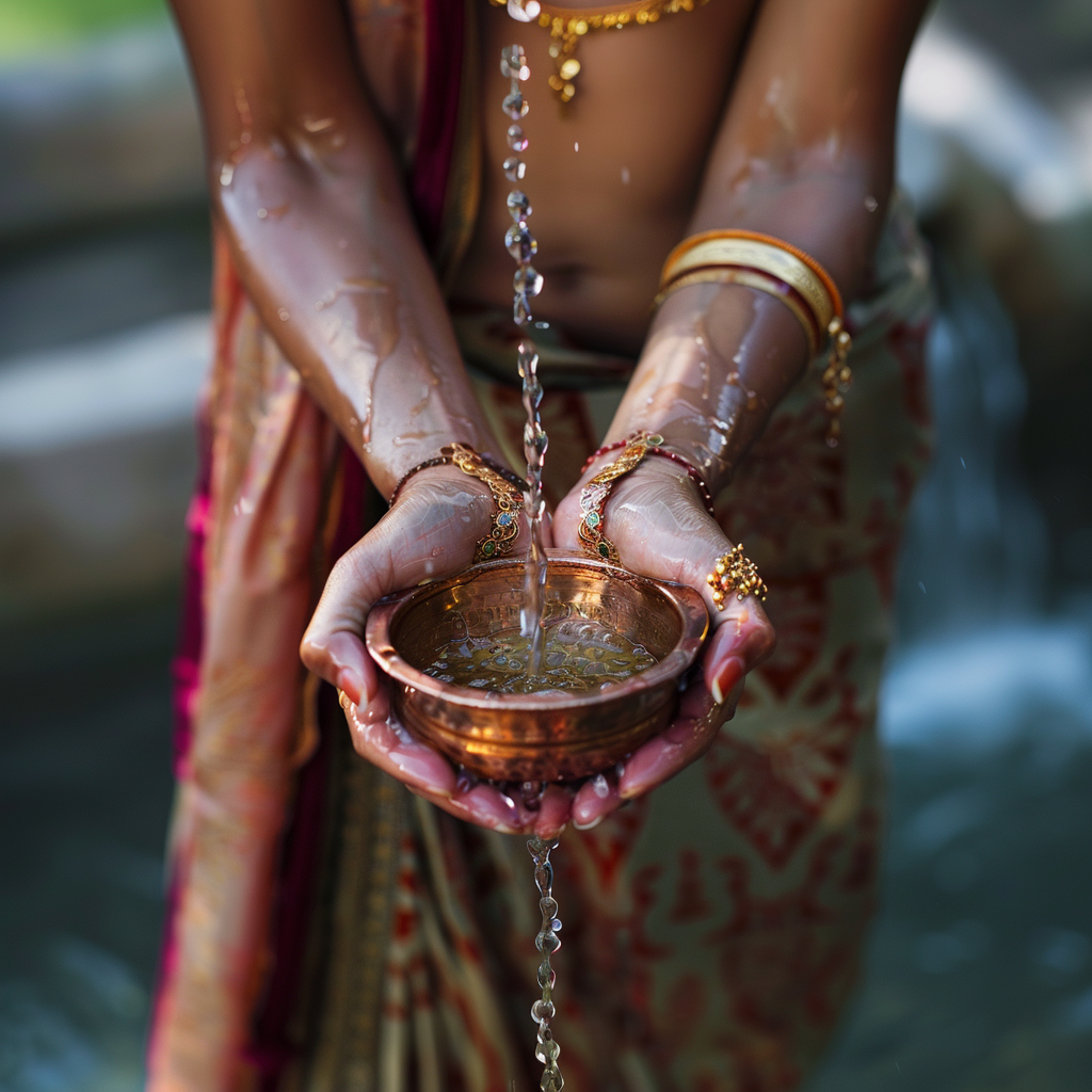 🌊 In all spiritual traditions water is of great significance. Theertham is water charged by Vedic rituals to give it a higher vibration. We use this special water in all our products! Read more...