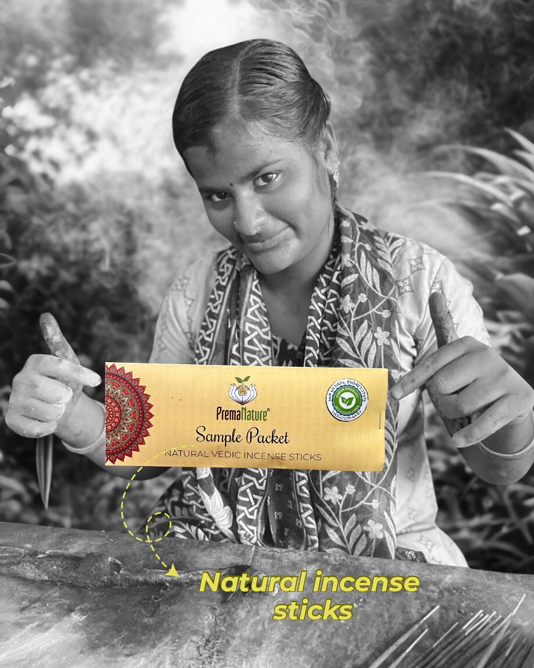 Every stick is hand-rolled by women artisans, supporting empowerment and fair trade. Our blends are made with care, combining science and spirituality, so each stick carries both purity and purpose —incense, as it was meant to be.